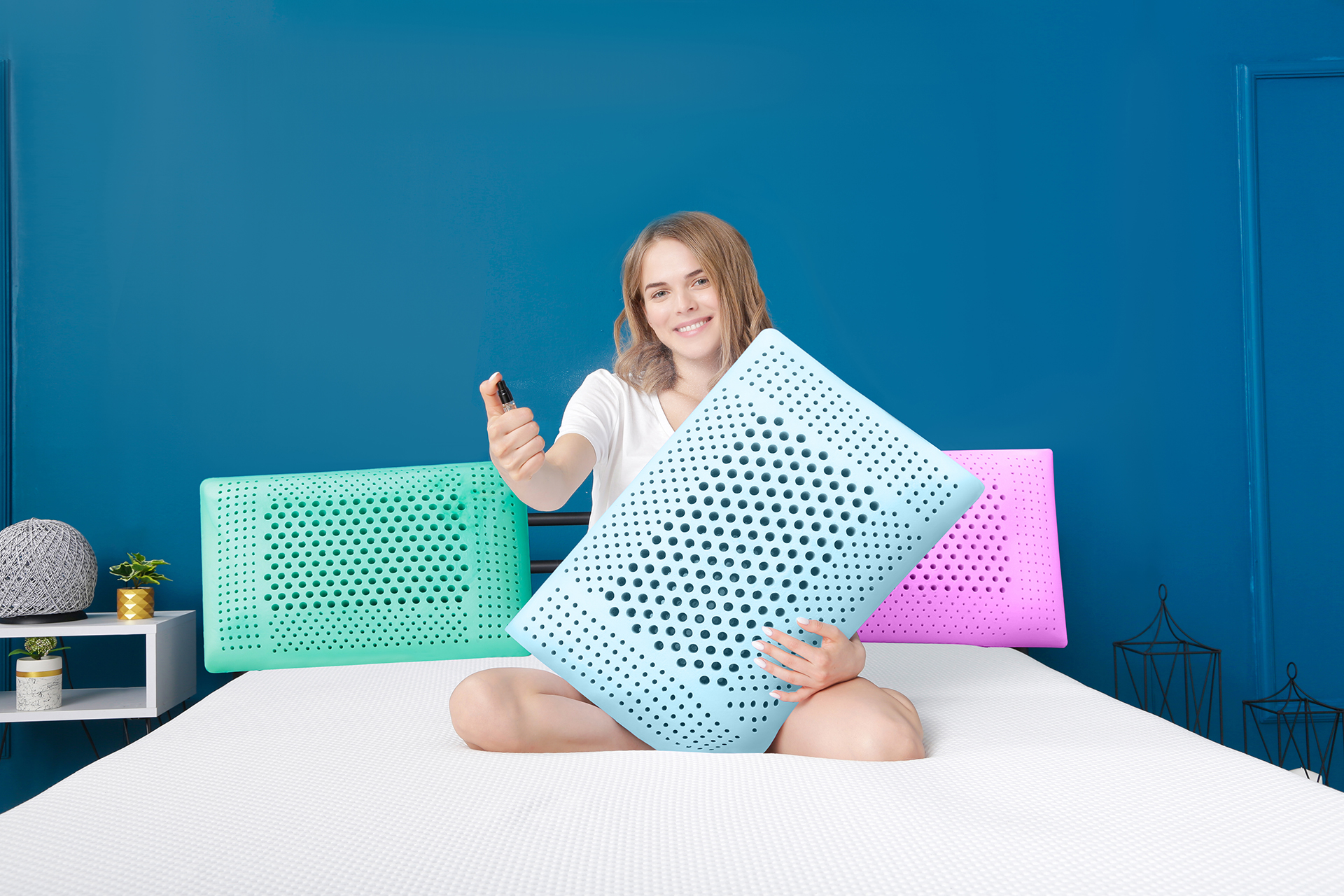 Am schönsten und auch gesündesten ist es, auf einem frischen, trockenen Bett zu schlafen. Daher ist es äußerst wichtig, dass Ihr Kissen während des Schlafens trocken bleibt. Zu diesem Zweck verfügt das Aromatherapie-Kissen über eine perforierte Struktur, genauer gesagt über zahlreiche Löcher auf der gesamten Oberfläche. Die Löcher sind in der Mitte, wo wir am meisten schwitzen, größer und an der Seite, wo der Körper weniger Kontakt hat, kleiner. Die Löcher sorgen dafür, dass das Kissen ständig belüftet wird – die gesamte Feuchtigkeit, die Sie während des Schlafs abgeben, wird an die Luft abgegeben und trockene, frische Luft gelangt in das Kissen.